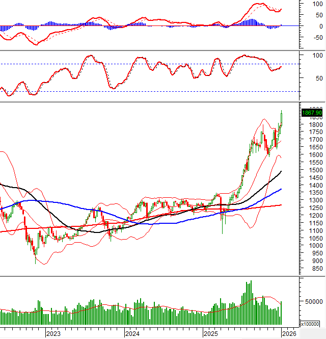 Tuy nhiên, VN-Index đã lập đỉnh 52 tuần mới và tiếp tục bám sát dải trên (Upper Band) của Bollinger Bands cho thấy triển vọng tích cực vẫn đang hiện hữu.