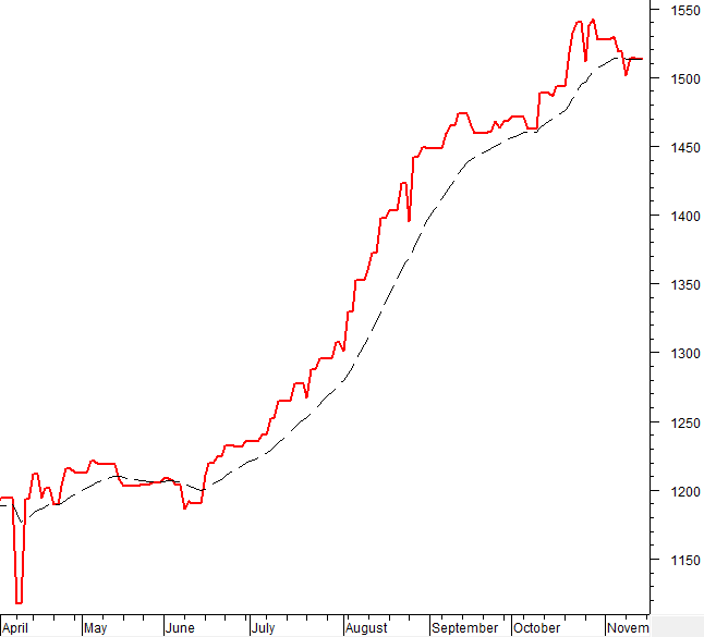 Trong phiên giao dịch ngày 14/11/2025, HNX-Index tăng điểm phiên thứ 4 liên tiếp và đang nằm trên đường SMA 100 ngày cho thấy tâm lý nhà đầu tư đã bớt bi quan.