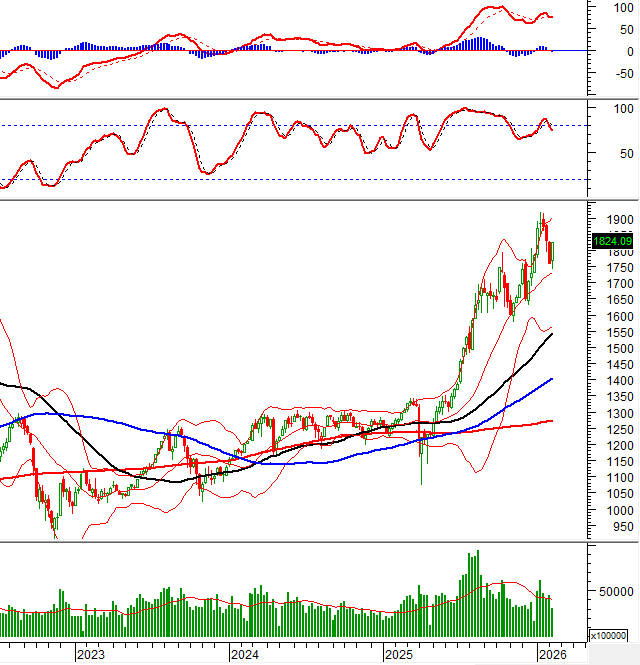 VN-Index hồi phục với cây nến xanh dài đồng thời giữ vững trên đường Middle của Bollinger Bands, cho thấy xu hướng tăng trung hạn vẫn chưa bị phá vỡ. Tuy nhiên, Stochastic Oscillator vẫn suy yếu sau khi cho tín hiệu bán nên chỉ số nhiều khả năng sẽ còn rung lắc trong ngắn hạn để kiểm định lại lực cầu và chờ sự xác nhận rõ ràng hơn từ dòng tiền.