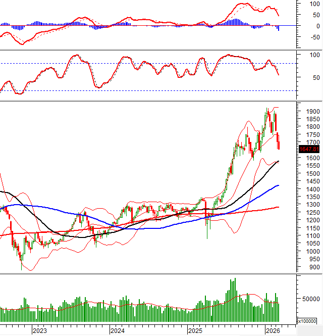 Mặt khác, VN-Index đang kiểm tra đáy cũ tháng 12/2025 (tương đương vùng 1,630-1,690 điểm). Đây sẽ là vùng hỗ trợ quan trọng quyết định xu hướng trong thời gian tới của VN-Index.