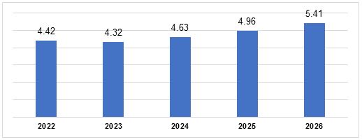 ba tháng đầu năm giai đoạn 2022-2026 (Tỷ USD). Nguồn: Cục Thống kê