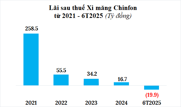 Theo báo cáo gửi Sở Giao dịch Chứng khoán Hà Nội (HNX), Công ty Xi măng Chinfon (CFCC) ghi nhận khoản lỗ sau thuế gần 20 tỷ đồng trong 6 tháng đầu năm 2025, trái ngược với mức lãi hơn 580 triệu đồng cùng kỳ năm trước. Đây là lần đầu doanh nghiệp báo lỗ kể từ khi bắt đầu công bố kết quả tài chính lên HNX.
