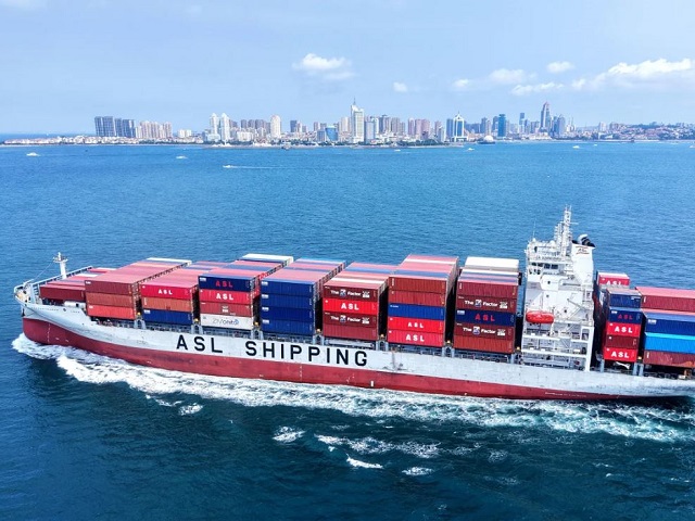 Một tàu container trên Vịnh Giao Châu ở Thanh Đảo, tỉnh Sơn Đông, Trung Quốc, ngày 05/08/2025.